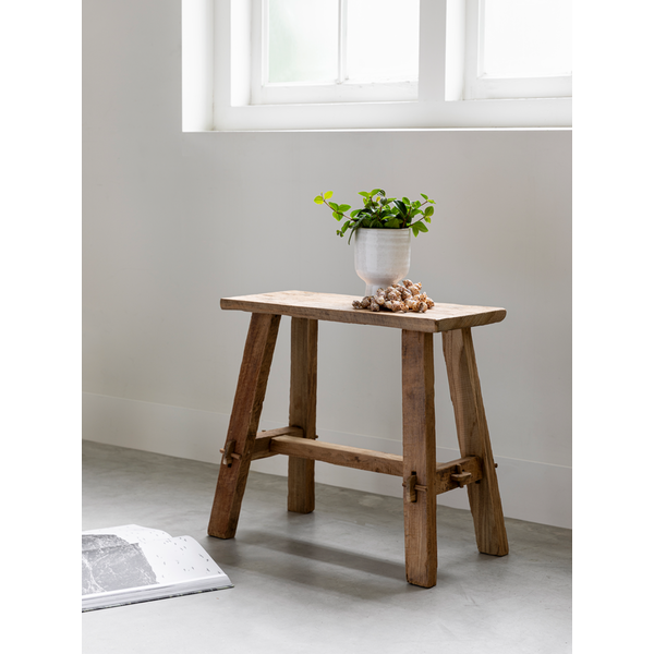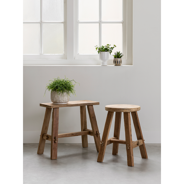 Our Antiques Collection is made from old teak. The bowls and side tables were once used as mortars in Indonesia. The antique wood shows the cracks and marks of its past lives and functions, bringing its rich history into your home.