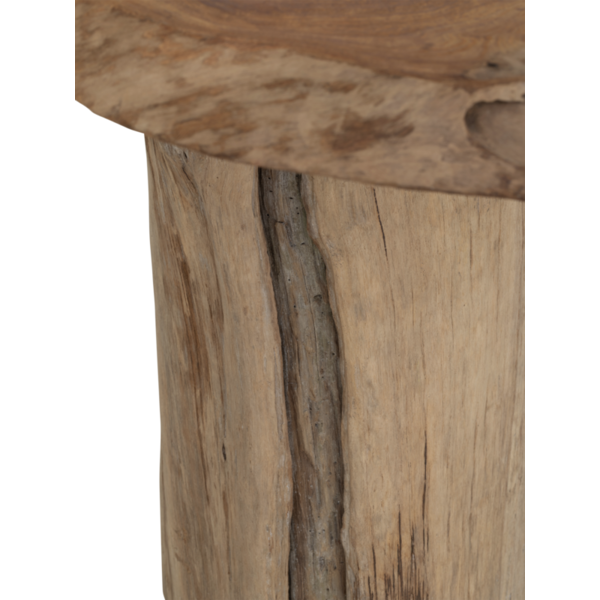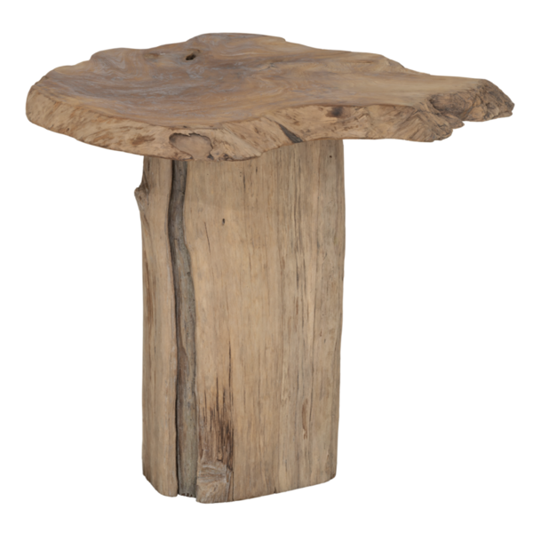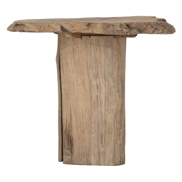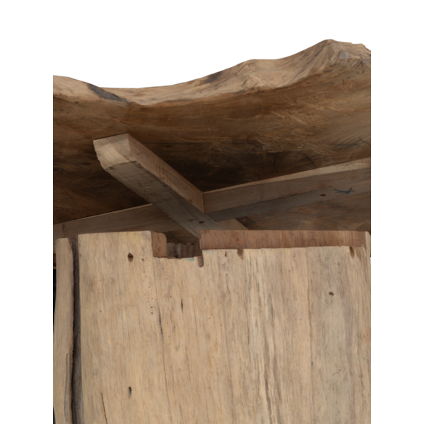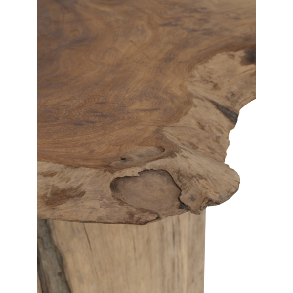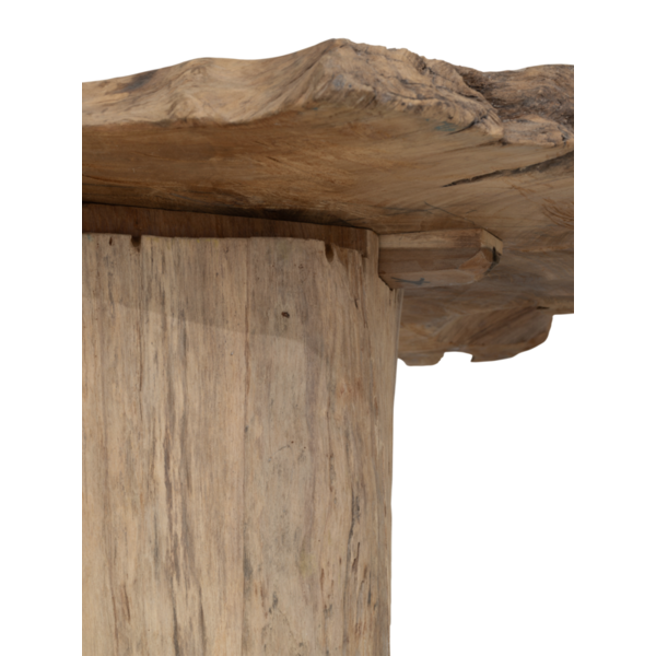 Handcrafted from recycled teak, this unique counter table features an organic top and sturdy base. A striking piece for indoor or outdoor bar settings.