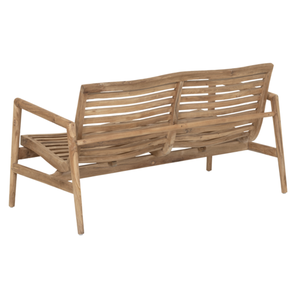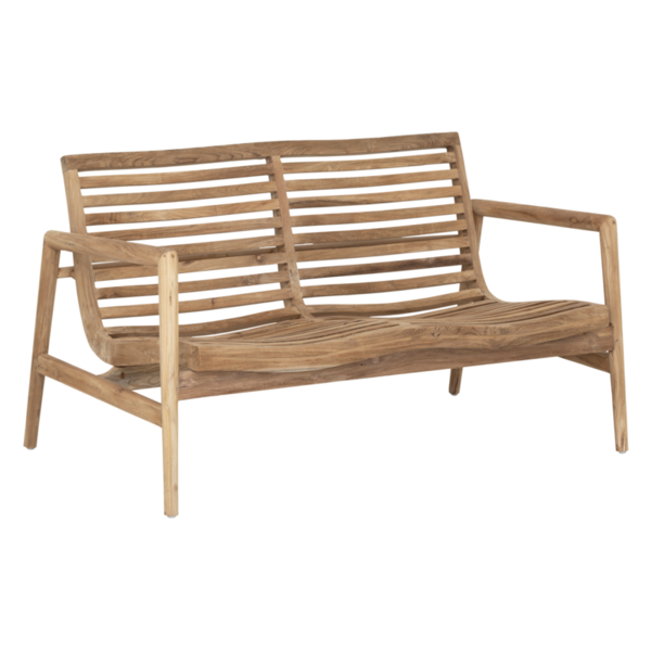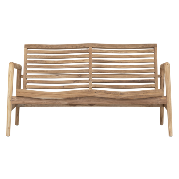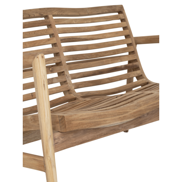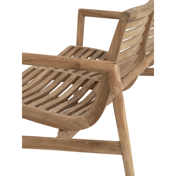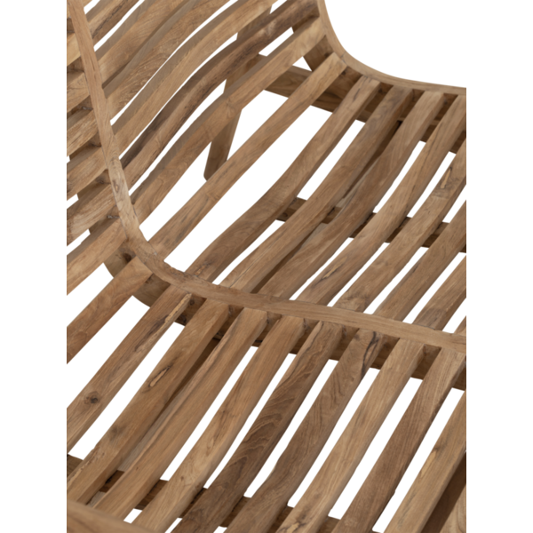 Thanks to the molded wood, the chair and benches are incredibly comfortable – even without a cushion! Indoors, the slats add a light and airy touch, while outdoors they allow water to drain off easily.