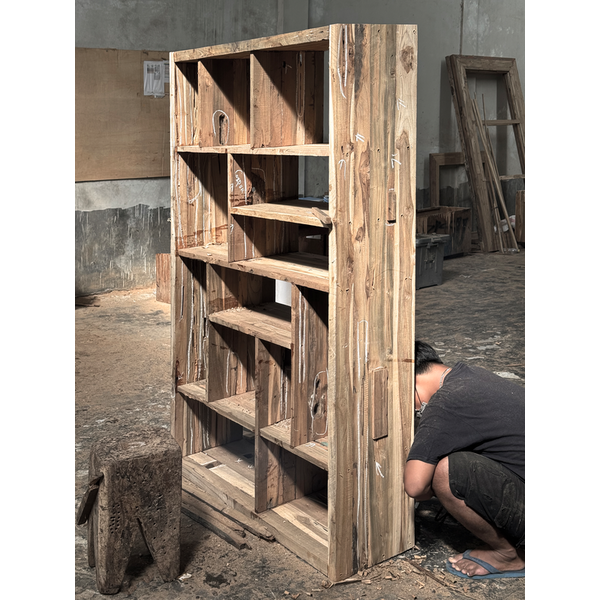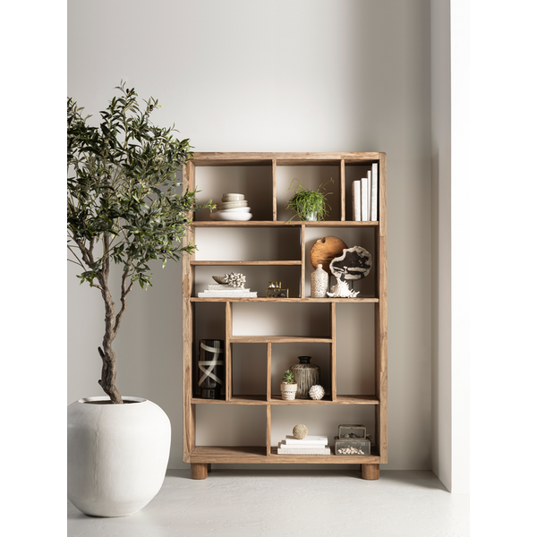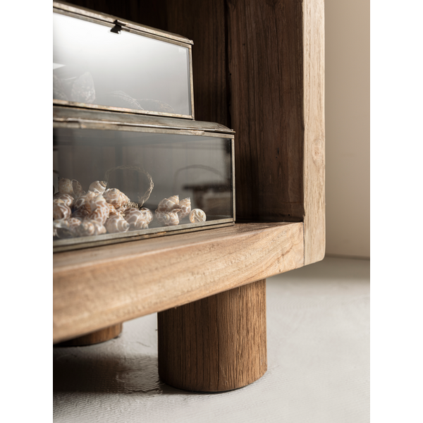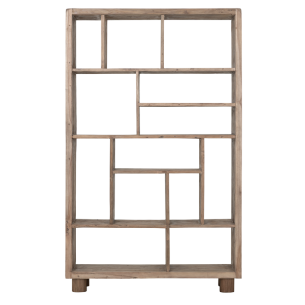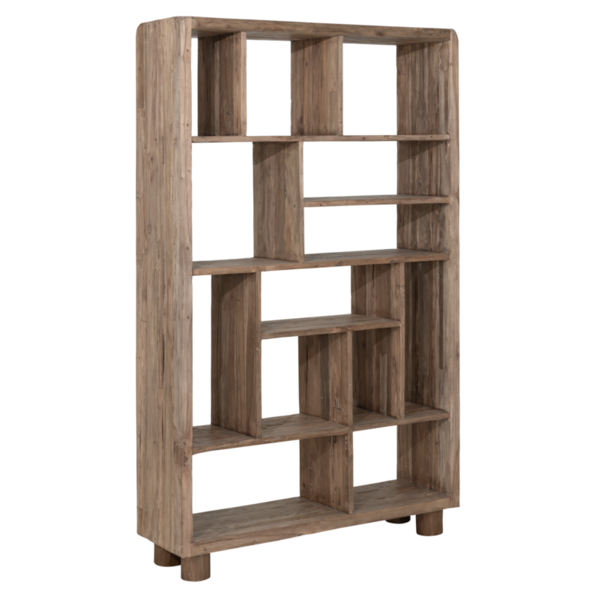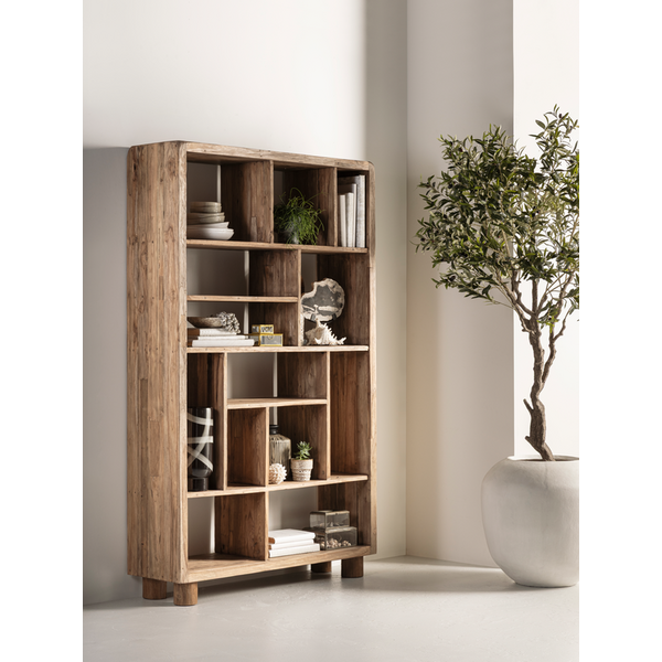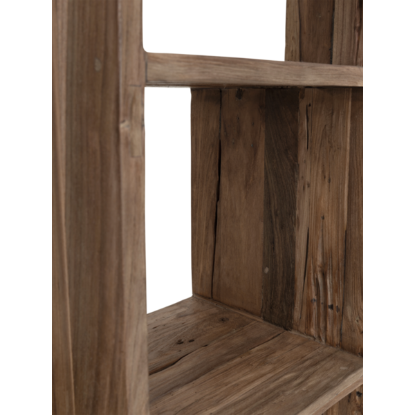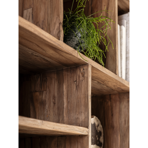 With its open compartments, bookcase Don has a playful look. Made from extreme rustic teakwood, the design is completed by rounded legs that add a soft and distinctive touch.