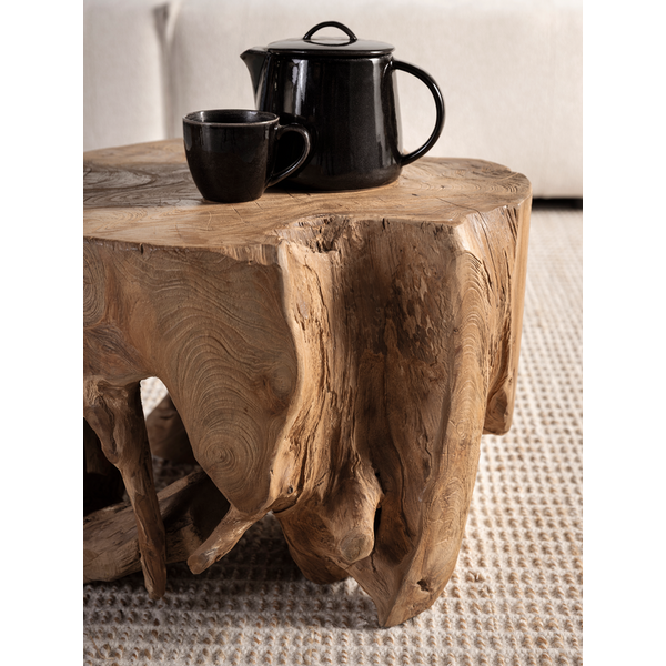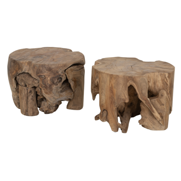 These tables reused the roots of teak trees. Therefore, each table has its own look and shape.