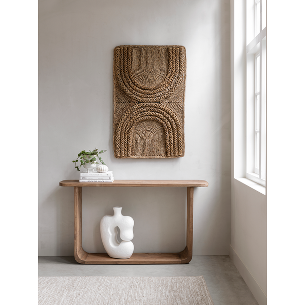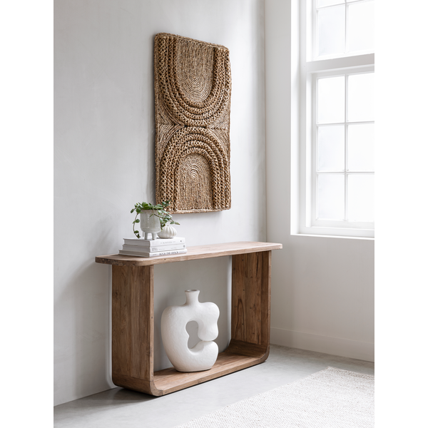 Console table Vico features a natural look, crafted from extremely rustic teakwood. Its sleek, minimalist design beautifully complements the natural characteristics of the wood, creating a perfect balance between simplicity and character.