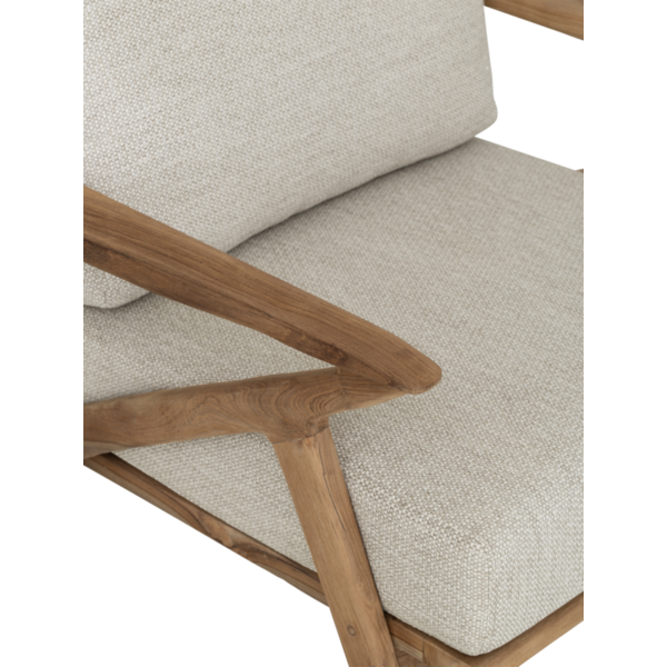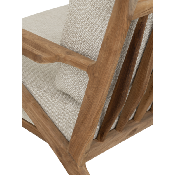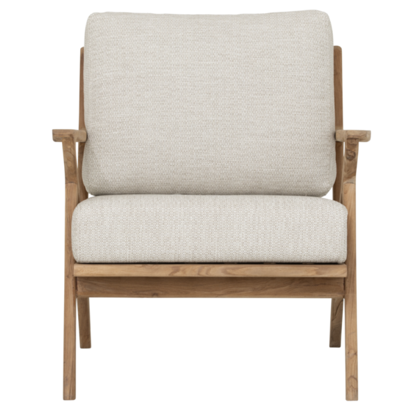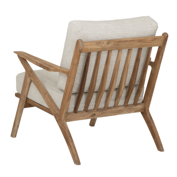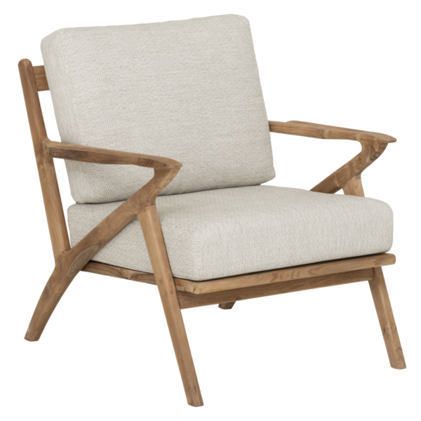 Lounge chair Charles blends sleek angles with rustic teakwood and comfortable cushions. With its open design, it's perfect for relaxed moments in the living room, on the veranda, or under a covered patio.