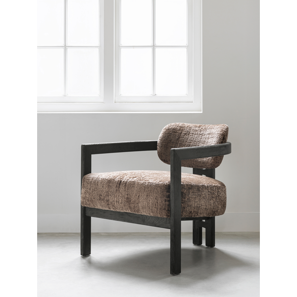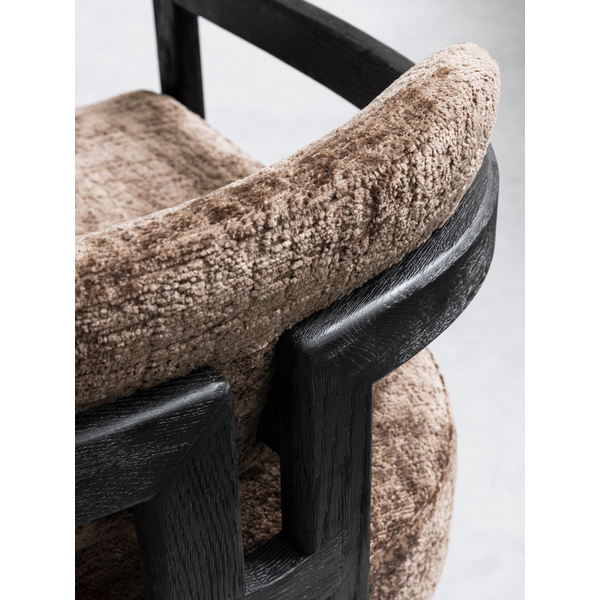 You can confidently call lounge chair Kelly a true work of art. The exclusive Luxor fabric with the waffled texture offers both class and comfort. However, the real beauty lies in the frame, with the back being particularly worth admiring.