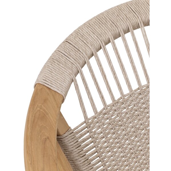 This stylish armchair combines comfort with a natural look. Part of the Eco Line, it is made from durable combination of synthetic rattan and teakwood. The refined craftmanship and rounded shape create a comfortable, inviting seat that adds warmth and character to the space.