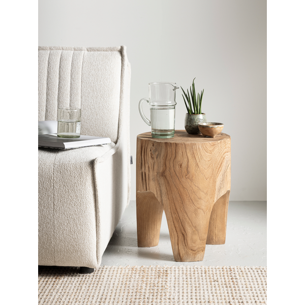 Crafted from solid teak logs, each table is carved from a single piece of FSC-certified wood. Natural, sturdy, and full of character. No two are the same.