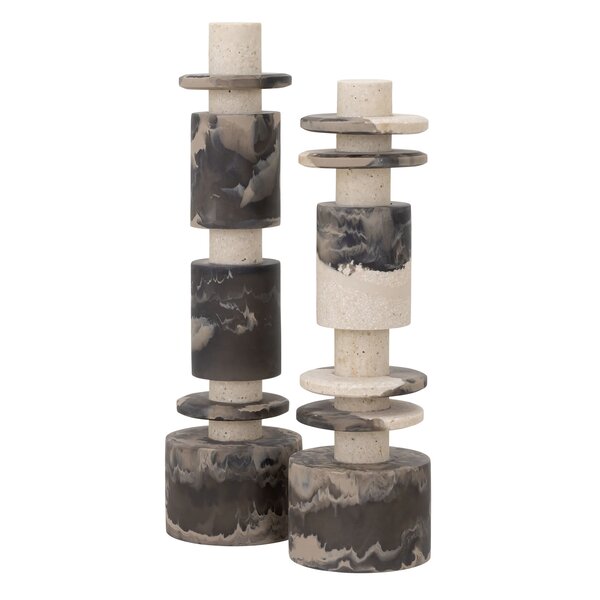 Statue Alba is a modern, luxurious decorative piece of resin and travertine, with organic shapes and earthy tones. Its refined design adds calm and balance as a stylisch accent.