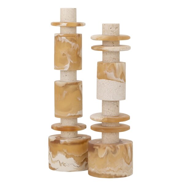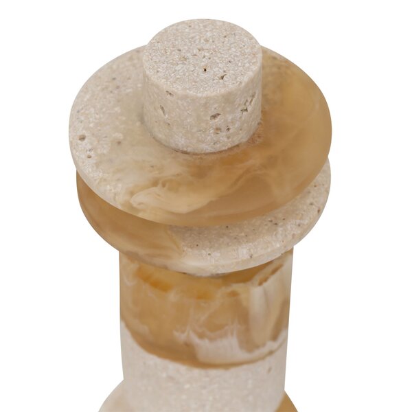 Statue Alba is a modern, luxurious decorative piece of resin and travertine, with organic shapes and earthy tones. Its refined design adds calm and balance as a stylisch accent.