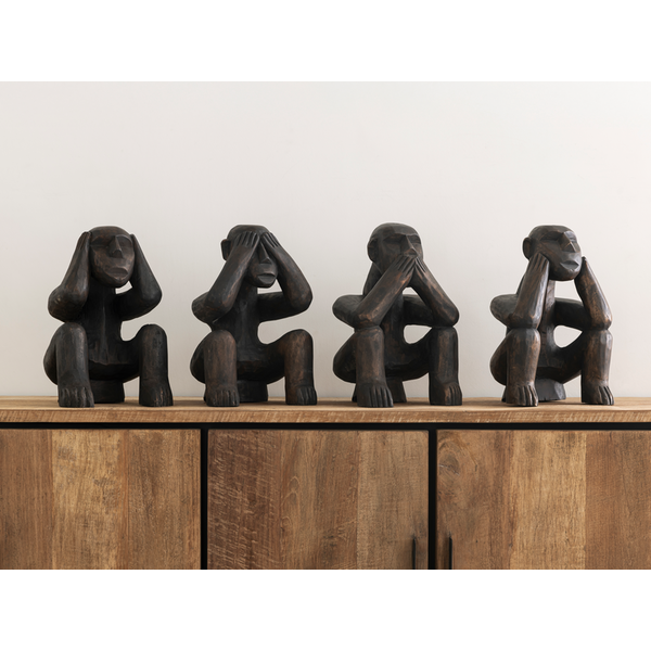 ‘Copy like a monkey’ is a Dutch saying. Our four monkeys do anything except mimic each other. It’s just like a real family; each monkey has its own unique traits. They do nothing, say nothing, hear nothing, and see nothing. Handmade from mahogany wood.