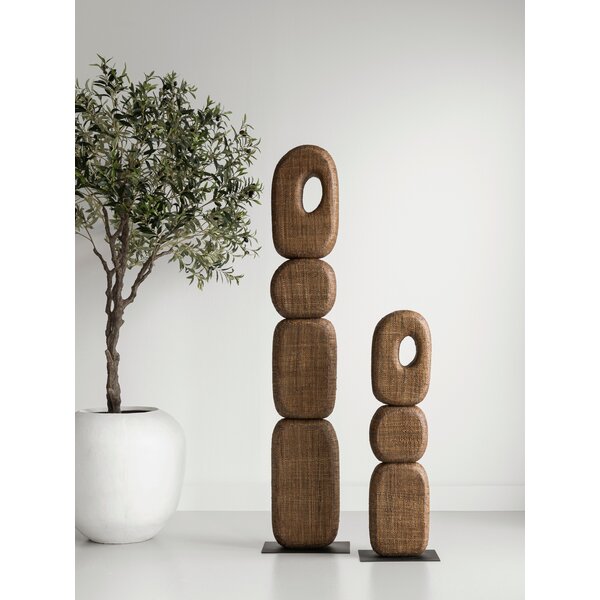 The Dolce sculptures are artistic statement pieces with an organic look. Woven palm in a warm brown tone creates a harmonious mix of texture and form, making each sculpture a striking accent that adds calm and character.