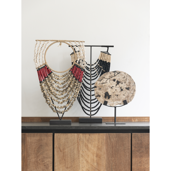 Statue Havana symbolizes a beautiful pearl necklace. The necklace is made of wood combined with stunning beads and is placed on a frame to accentuate the beauty of the necklace. Statue Havana will bring history and a rich appearance into your home!