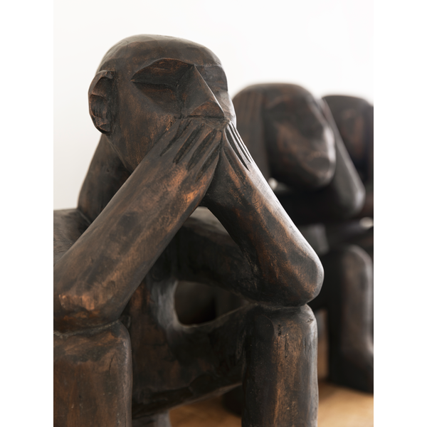 ‘Copy like a monkey’ is a Dutch saying. Our four monkeys do anything except mimic each other. It’s just like a real family; each monkey has its own unique traits. They do nothing, say nothing, hear nothing, and see nothing. Handmade from mahogany wood.