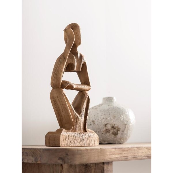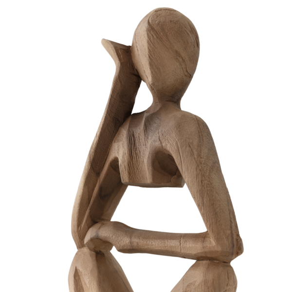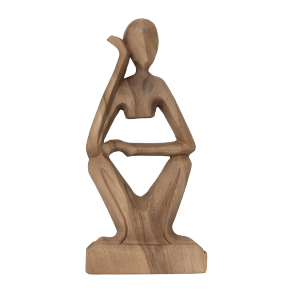 This wooden sculpture depicts a powerful and dynamic squat pose. The artwork captures both the physical strength and elegance of movement in wood.