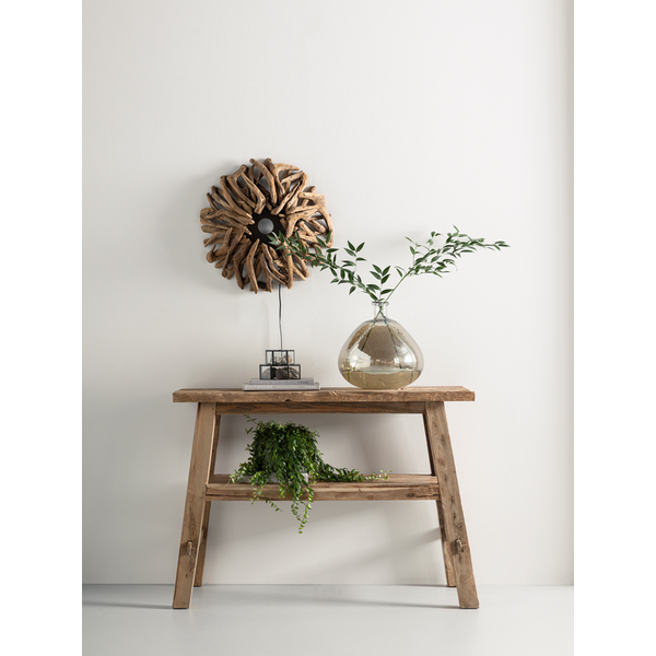 Wall lamp Zena owes its fantastic shape to the material used to create this lamp: the roots of a teak tree. These roots are transformed undergrounds into a dense wood and dried afterwards. Very sustainable and extra special! Each item is unique because roots grow unpredictably.