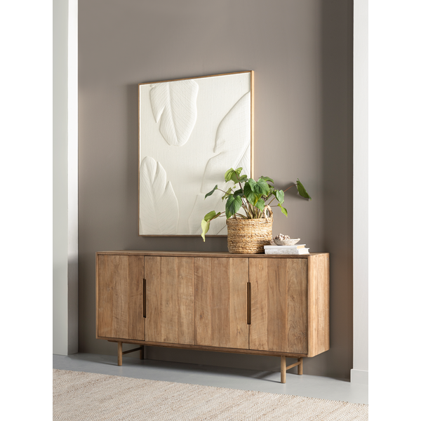 Wall panel Japanese Ginko Leaf is made of banana bark and is surrounded by a wooden frame. The use of this sustainable material gives each panel a unique appearance. The designs are based on the fan-shaped leaves of the Japanese Ginko tree. Due to the painting in a natural color this wall panel is an addition to any interior!